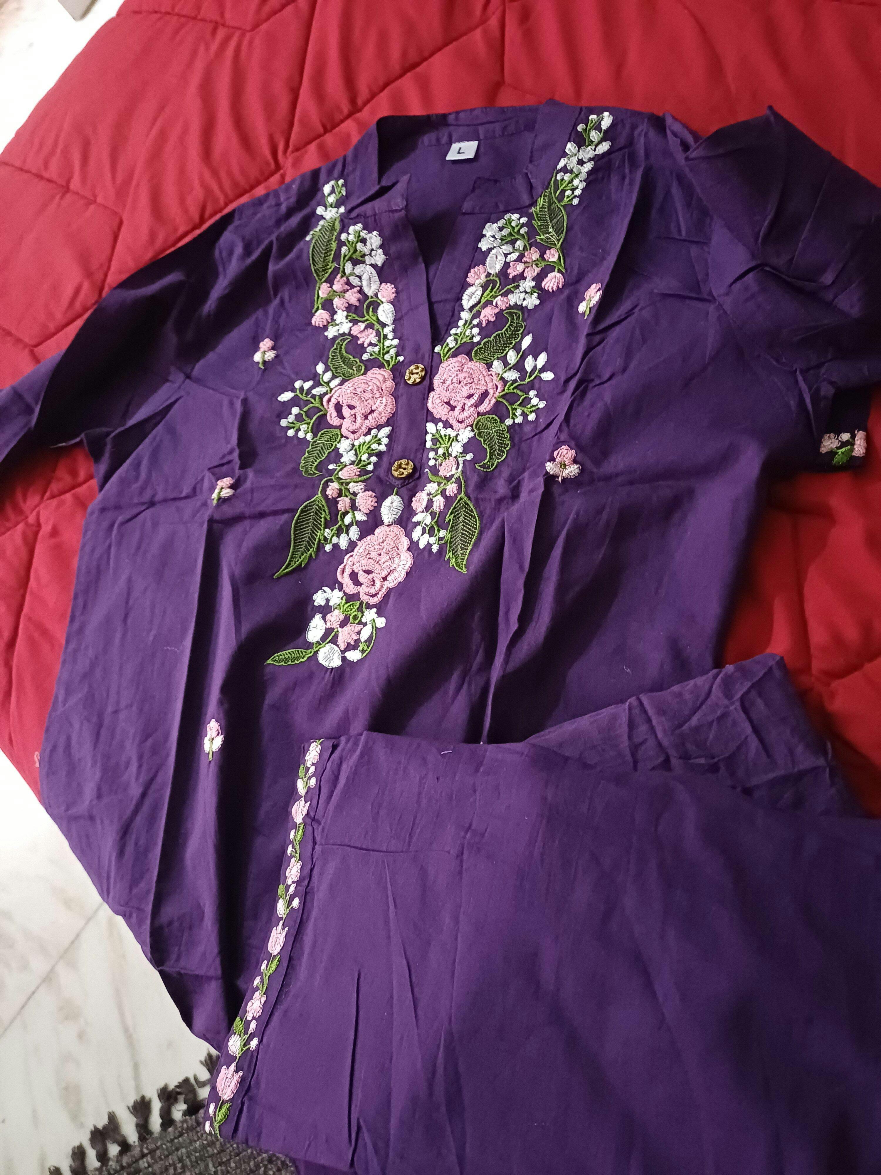 Make a regal statement with our stunning Deep Purple Embroidered Kurta with Pant & Dupatta Set. This elegant ensemble features a straight-cut kurta adorned with exquisite white and silver-toned embroidery around the neckline and bodice, extending to the cuffs, adding a touch of traditional grandeur. The kurta is paired with comfortable, matching straight pants, and a beautiful purple dupatta embellished with subtle golden accents. Ideal for festive occasions, ethnic events, or special gatherings, this set offers a blend of classic charm and contemporary style, ensuring you stand out with grace.
